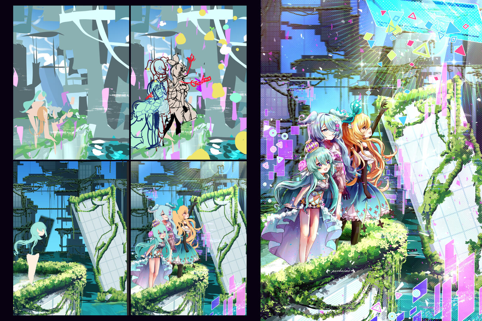 ❋ Simple background (basic pattern / gradient / flat colour / text / effects via brush)Illustration (Complete Render) comes with a hand drawn background and details included. Additional fees are based on complexity.What you'll receive