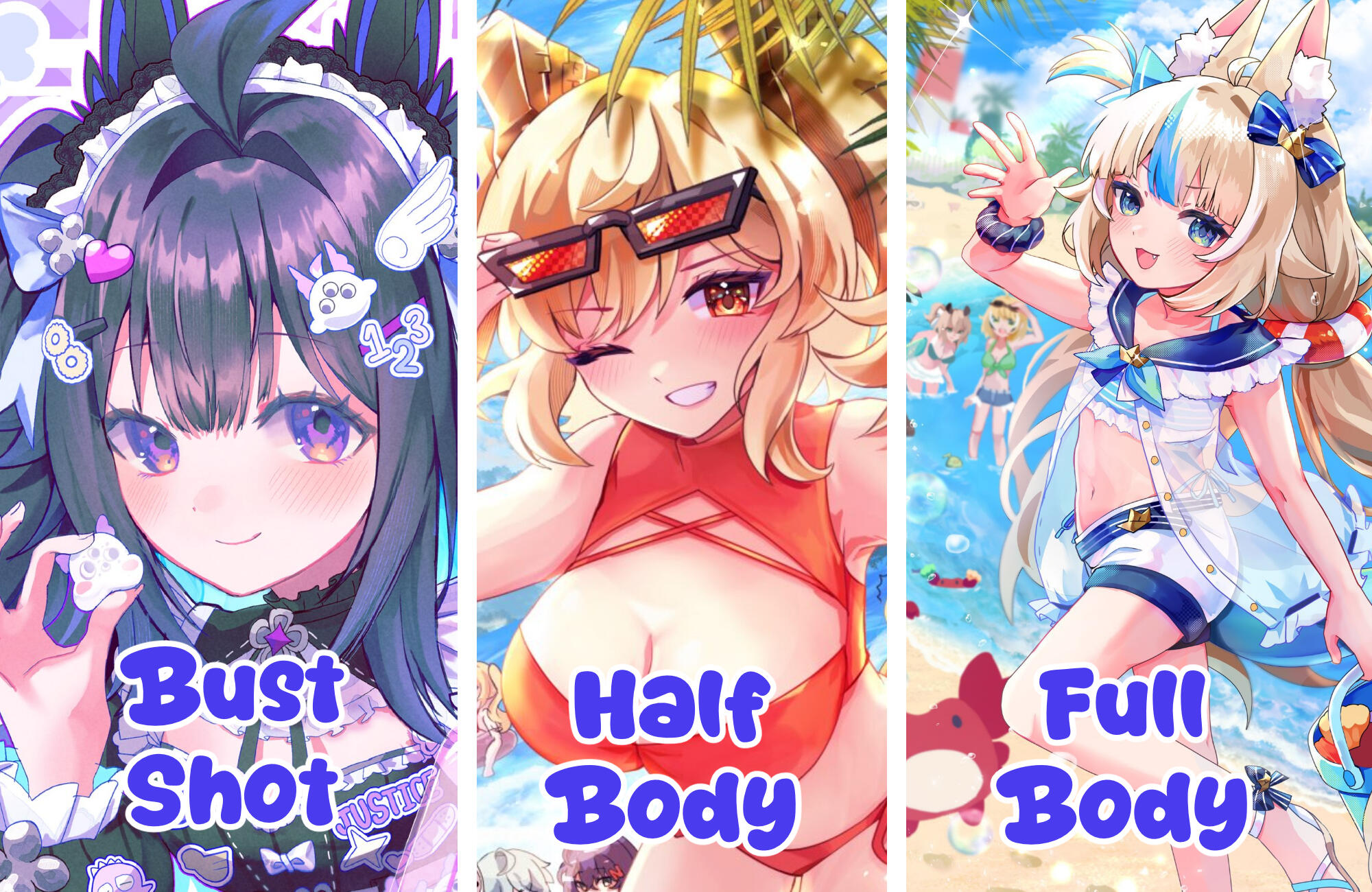 ❋ Simple background (basic pattern / gradient / flat colour / text / effects via brush)Illustration (Complete Render) comes with a hand drawn background and details included. Additional fees are based on complexity.What you'll receive